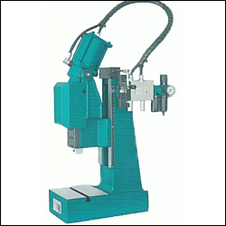 Pneumatik Kniehebel TischPresse mit 5 kN und 10 kN Druckkraft sowie PressenKöpfe einzeln mit VierkantStößel ( max. VerdrehFestigkeit ) und Gewindespindel-Höhenverstellung serienmäßig