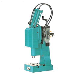 Pneumatik Kniehebel TischPressen mit 5 kN und 10 kN Druckkraft sowie PressenKöpfe einzeln mit RundStößel und Gewindespindel-Höhenverstellung serienmäßig