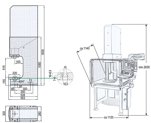 Als Handarbeitsplatz wird das KomplettSystem betriebsbereit mit PressenUntergestell, transparentem Schutzgehäuse und Lichtvorhang geliefert.